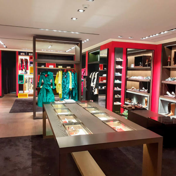 Aislagal participó en la ejecución de un stand de una reconocida firma de moda internacional en un Centro Comercial en Barcelona. En este caso, se ejecutaron todos los trabajos de albañilería, destacando la línea de acabados, por su exigente nivel de calidades. La ejecución de los trabajos no afectó a la actividad comercial del Centro.