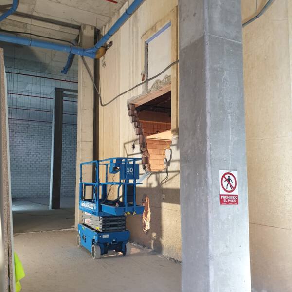 Previamente se ha hecho una demolición controlada, de unos muros de bloques, para ampliar la tienda.